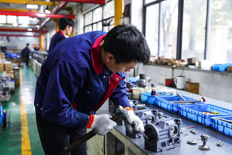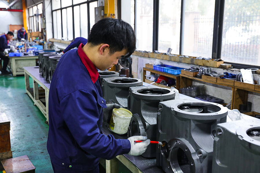 Deku Intelligent Drive ist eine Produktionsstätte, die sich auf allgemein gehärtete Untersetzungsgetriebe spezialisiert hat. Die Hauptprodukte sind: Kegelradgetriebe der DPK-Serie, Koaxial-Stirnradgetriebe der DPR-Serie, Parallelwellen-Stirnradgetriebe der DPF-Serie, Schneckengetriebe der DPS-Serie, nicht standardmäßige Untersetzungsgetriebe und weitere vier Serien mit Hunderten von Varianten.